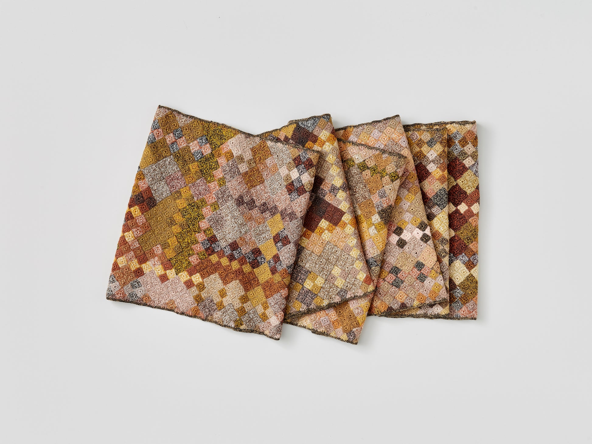Hand-made,100% merino wool scarf; 15 cm x 150 cm / 6 inches x 60 inches; Aureum color palette: dark brown with rose, red, burnt orange, bronze and copper shades. This piece captures what Fall is all about.