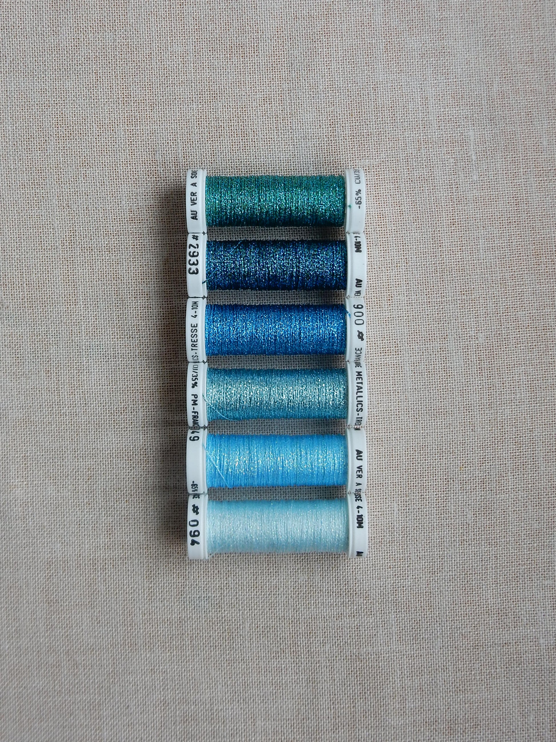 Metallic #4 soft and resistant metallic braid for hand and machine embroidery. Each of the 6 has 10 meters of fiber.