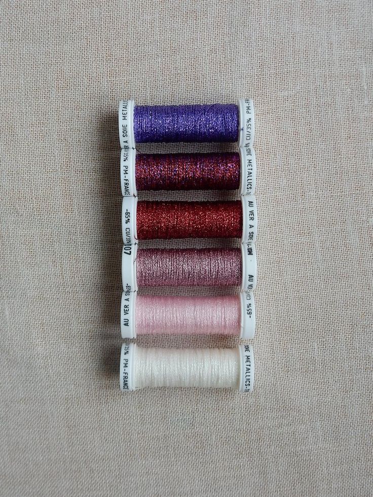 Metallic #4 soft and resistant metallic braid for hand and machine embroidery. Each of the 6 skeing has 10 meters of fiber.