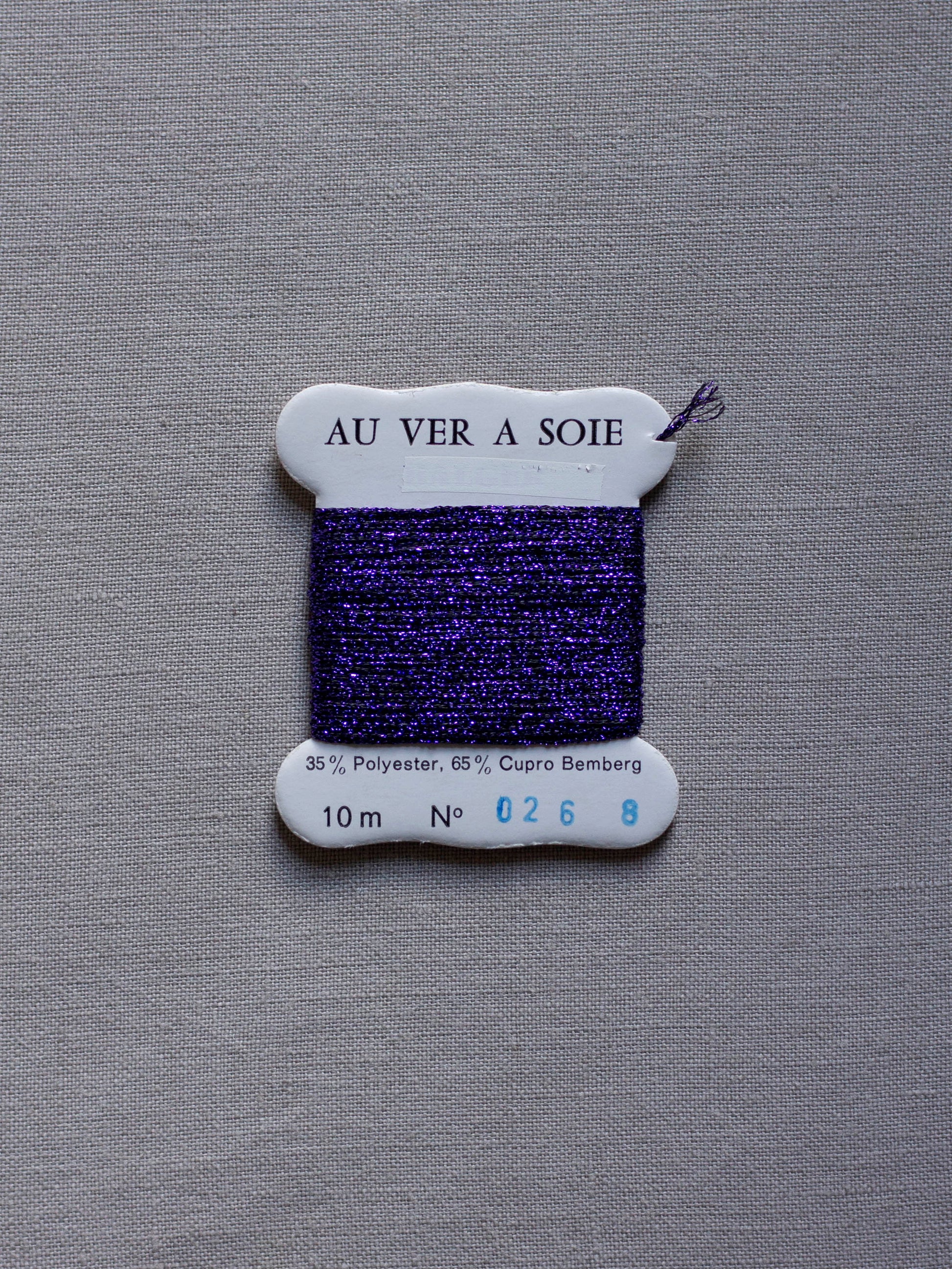Au Ver à Soie metallic braid #8, may be used on its own or mixed with other fibers in a variety of techniques, approximately the size of two strands of regular six strand DMC. 10 meters per spool.