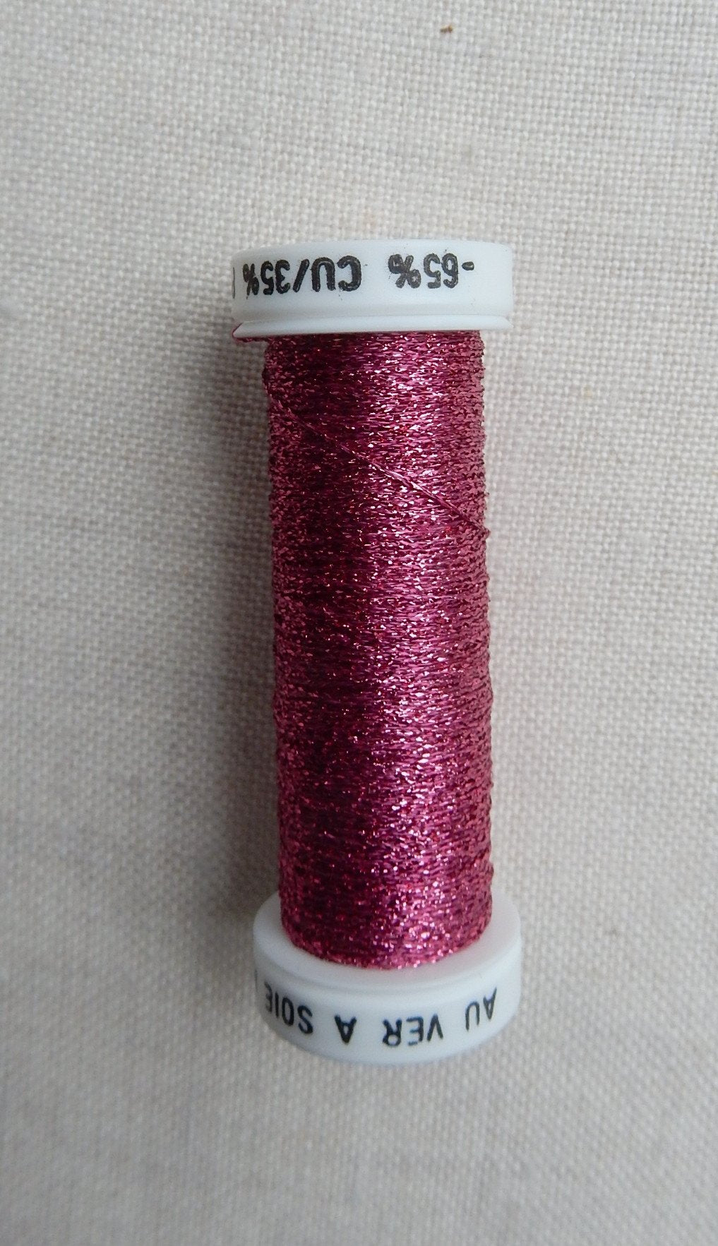 The finest size of Au ver a soie metallic braid, may be used on its own or mixed with other fibers in a variety of techniques, approximately the size of two strands of regular six strand DMC. 10 meters per spool. Made in France.