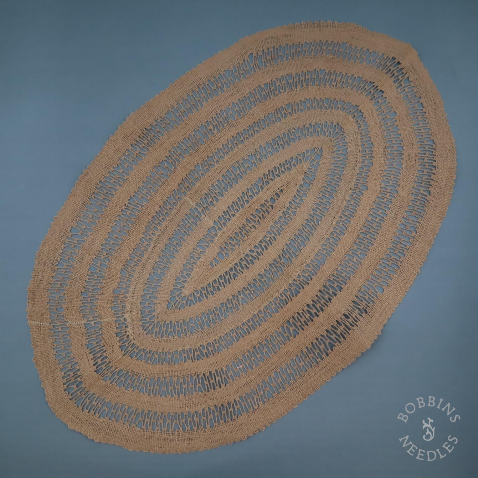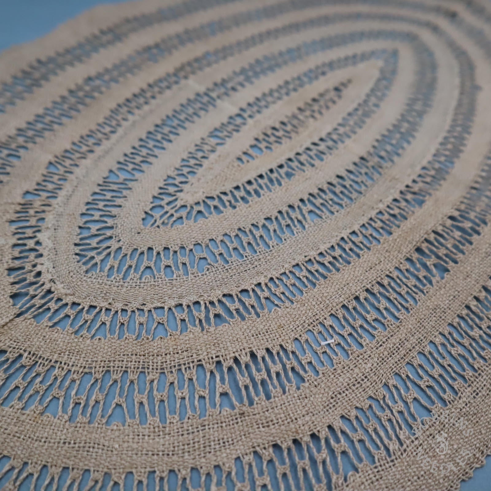 Early 20th century, vintage, French doily; handmade of natural linen; lovely centerpiece and heirloom; 44cm x 29cm / 17.5 inches x 11.5 inches