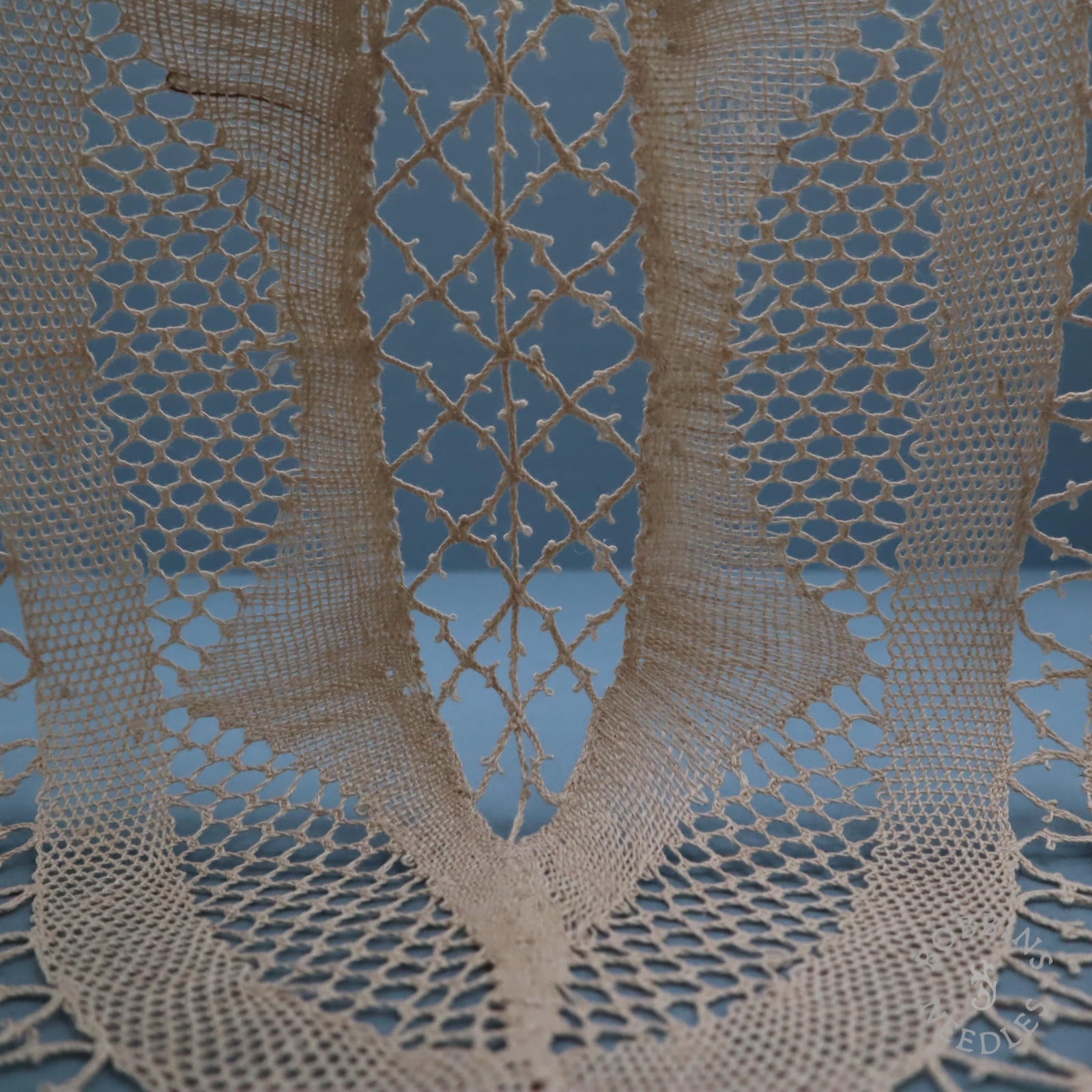 These pieces were found in an old house owned by a lace-manufacturer family (Experton, Frère et Sœur, Retournac, c. 1900). In 1903, the brother and sister Claire and Auguste Experton founded their first handmade bobbin lace factory in Retournac, France. Today, the Retournac Lace Factory Museum is located in the very building where this factory was established.