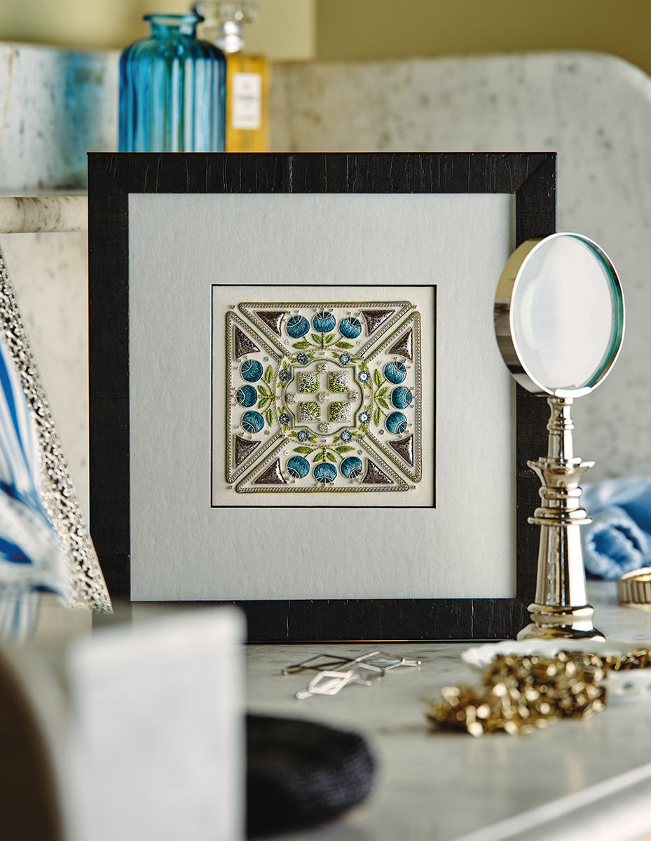Explore the meticulous paths and formal beds of this silver-themed parterre, the second in a series of three goldwork studies.