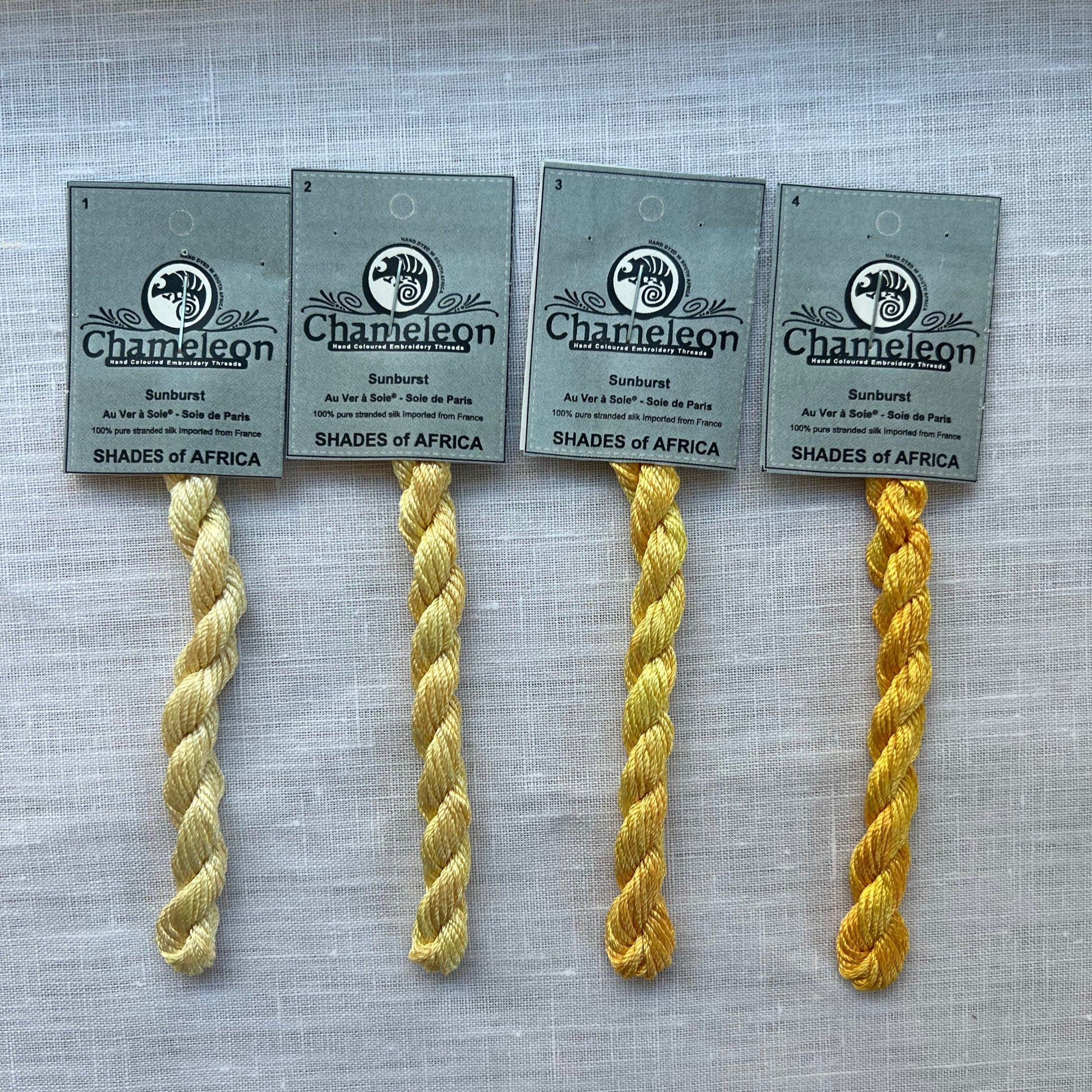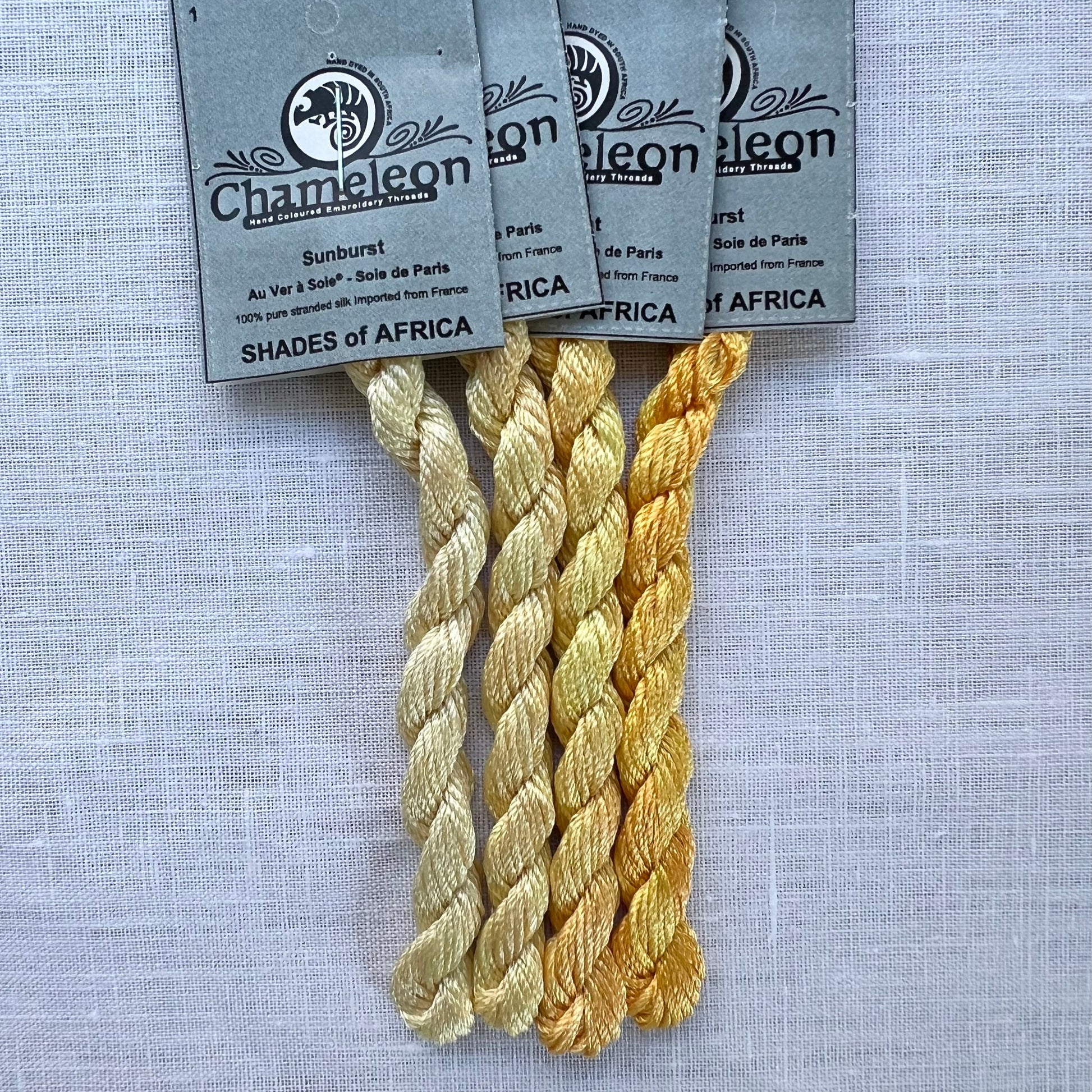 From collection "Shades of Africa," this pack contains 4 shades of bright yellow appropriately named "Sunburst."