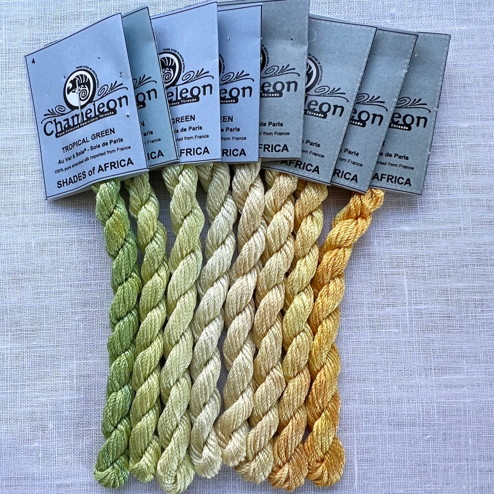 Hand-dyed and gently-variegated in South Africa by Chameleon Threads.
